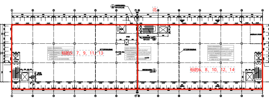 一號(hào)廠房三層至七層結(jié)構(gòu)與二層相同不予贅述,標(biāo)的對(duì)應(yīng)樓層如下圖: